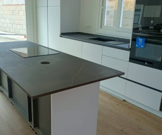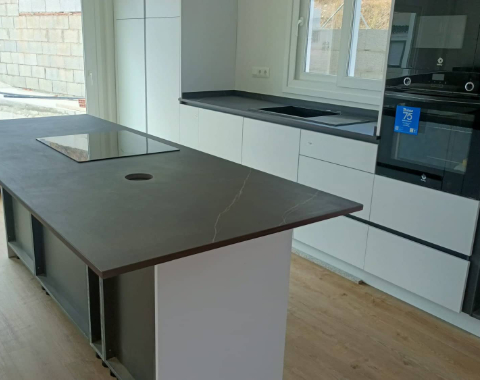Montaje de la encimera en 5 días después e instalación completa en menos de un mes (excepto periodos vacacionales de fábrica).