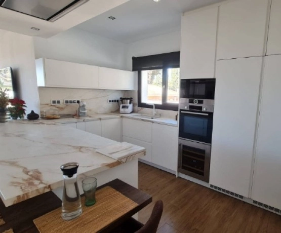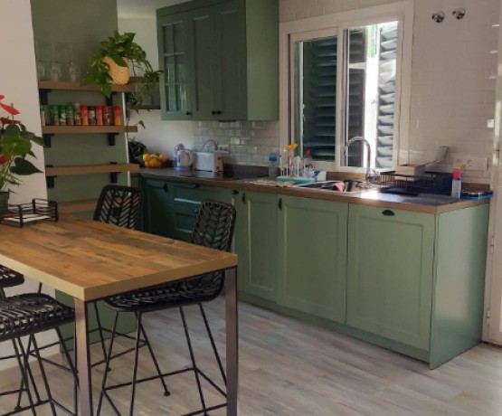 - Electrodomésticos Benavent y Corberó color acero; campana, placa, fregadero, grifo, horno y combi.