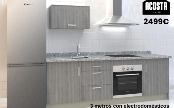 ¡Escríbenos!Cocina lineal hasta 3 metros Formica mate con encimera de granito y electrodomésticos en acero 2.499€.