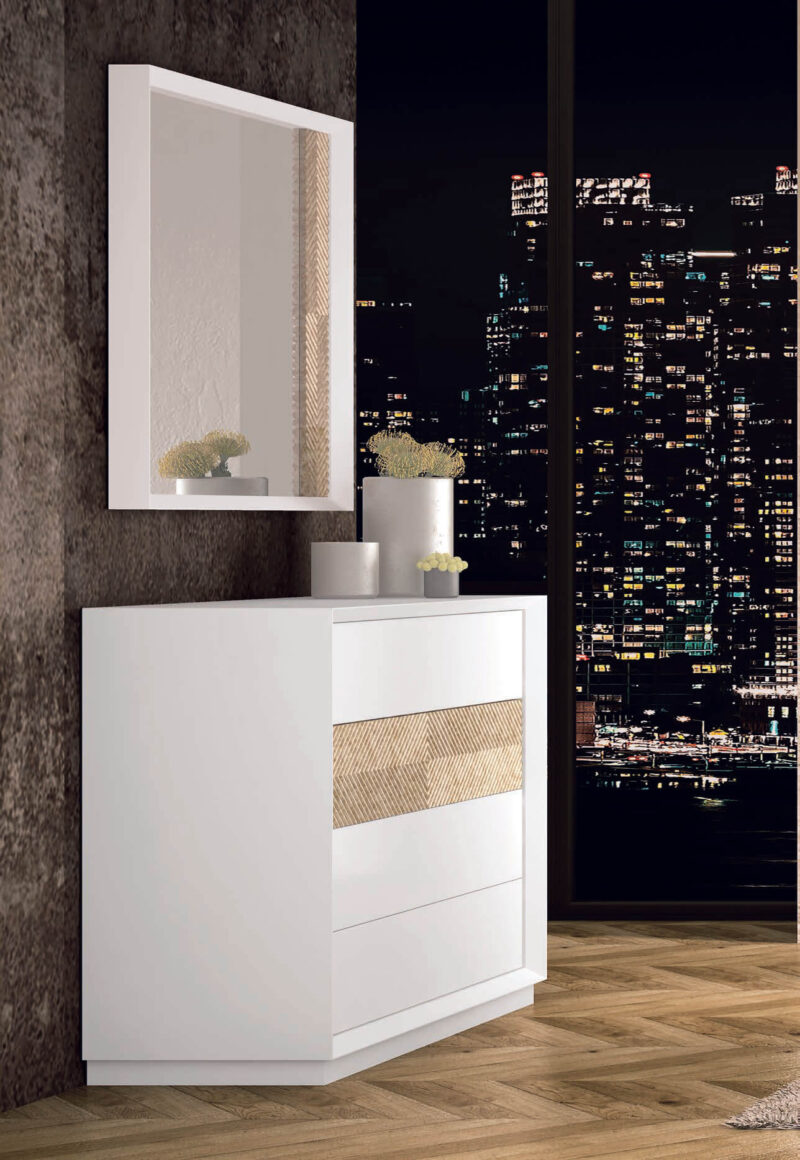 Cómoda de 4 cajones con un marmolizado champán que aportará estilo y elegancia a tu dormitorio.