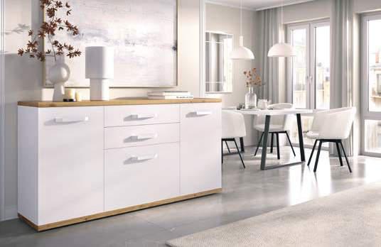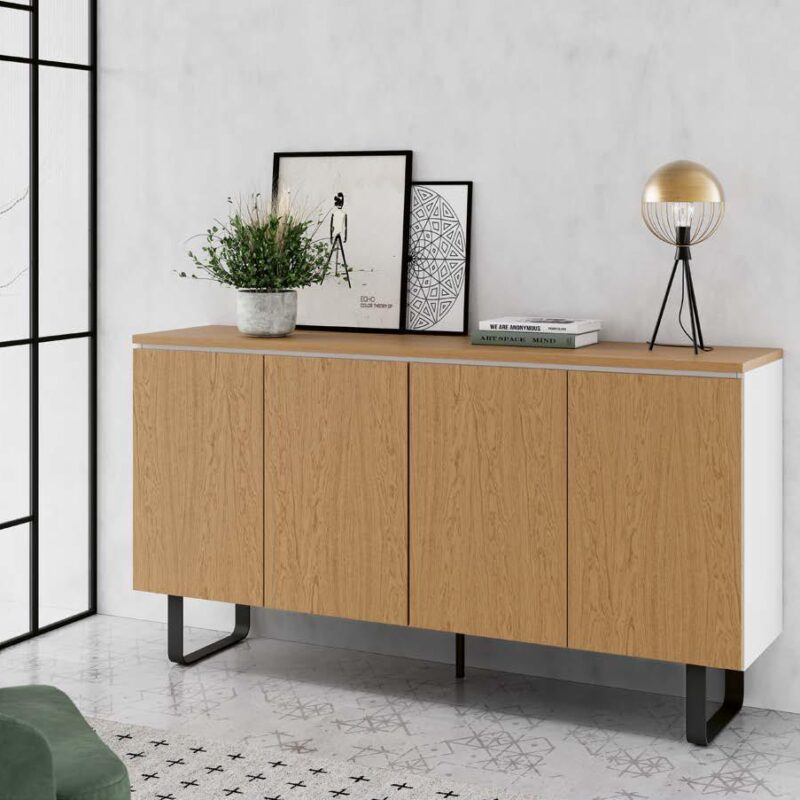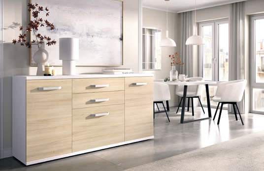 Dale un toque de elegancia y funcionalidad a tu salón con nuestro aparador de salón. Diseñado en una moderna combinación de roble y blanco, este mueble es ideal para mantener todo en orden mientras realza la decoración de tu hogar.