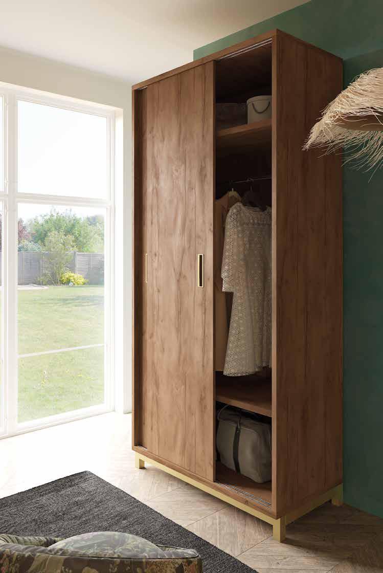 Perfecto para dormitorios o vestidores, puede configurarse con barras, baldas, cajones o zapateros, adaptando el interior a tus necesidades reales. Disponible en varios acabados y tiradores, se integra con facilidad en estilos modernos, clásicos o contemporáneos.