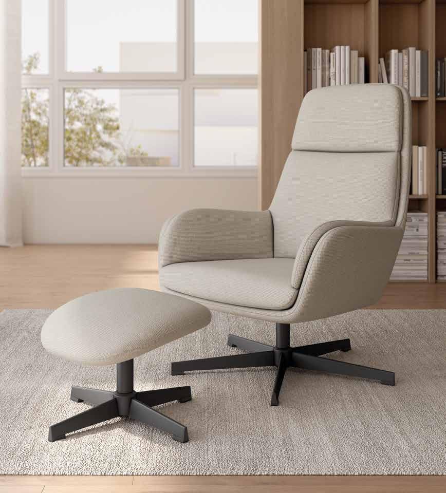 La butaca Citrea está pensada para disfrutar del descanso con el máximo confort. Su sistema giratorio 360° permite moverte con total libertad, mientras su diseño tapizado y su ottoman a juego crean una experiencia de relax completa.