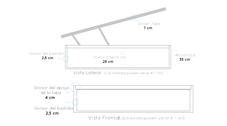 - TIRADOR EN ACERO inoxidable atornillado a la estructura de la tapa para evitar que se suelten cuando levantamos la tapa con el colchón en el día a día. Solo disponible tirador de serie especial para este tipo de tapa.