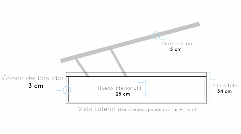 día. (Colores disponibles en nuestro muestrario de colores de tiradores). - Fondo del canapé fabricado en tablero de 10 mm.