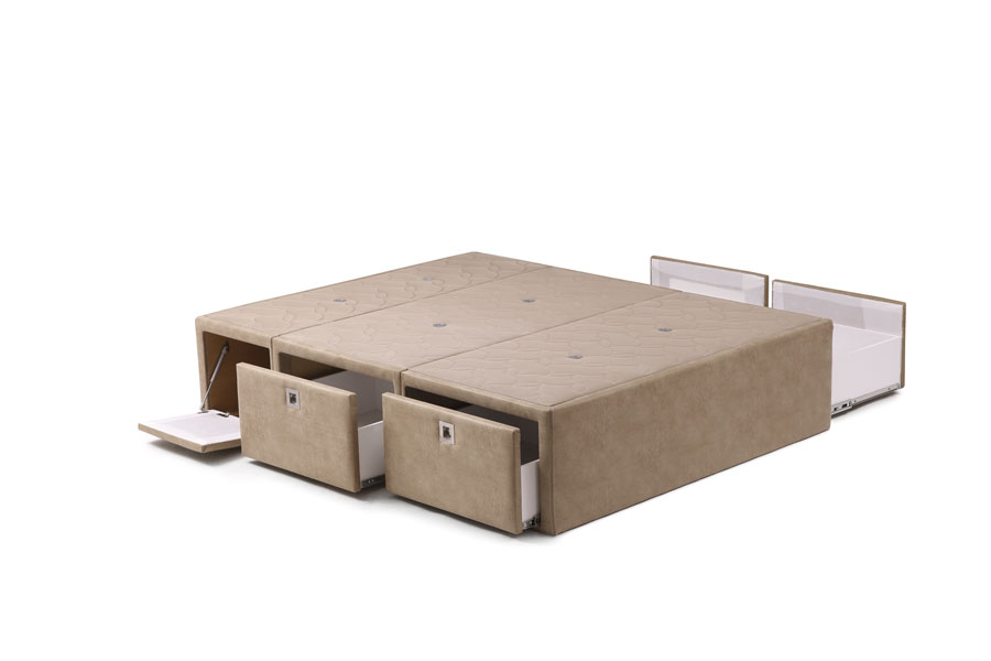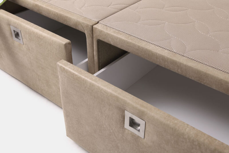Canapé tapizado África con 3 cajones laterales en cada lado para facilitarte el orden y colocación en tu dormitorio. Descubre el verdadero sentido de tener un canapé altamente funcional en casa con materiales de primera calidad. Configúralo con opciones que lo ajustan a tu estilo de vida. ¡Este producto tiene un descuento -10% en tienda física, consultar condiciones enseñando esta imagen!.
