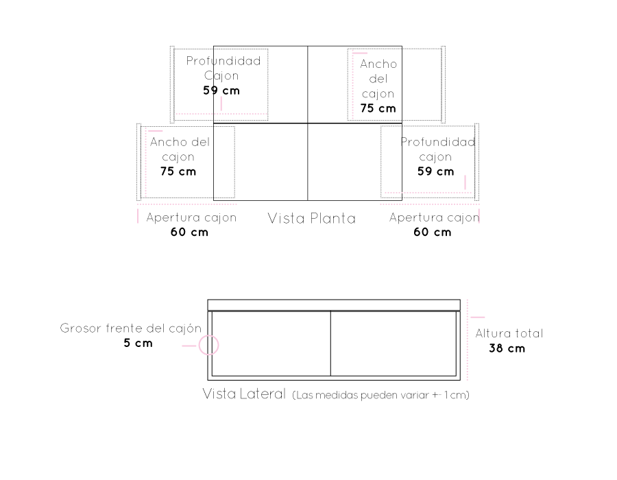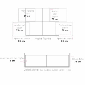 - Cajón con guía telescópica extraíble de gran calidad soportando un peso hasta de 35 kg. Módulo cajonera totalmente montado.