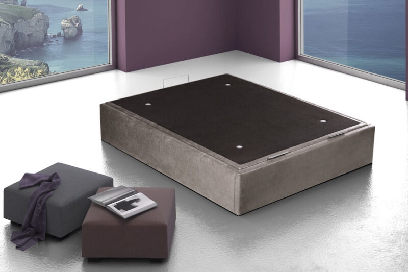 - Tapa tapizada con canto en polipiel o tela de serie (colores polipiel y tela