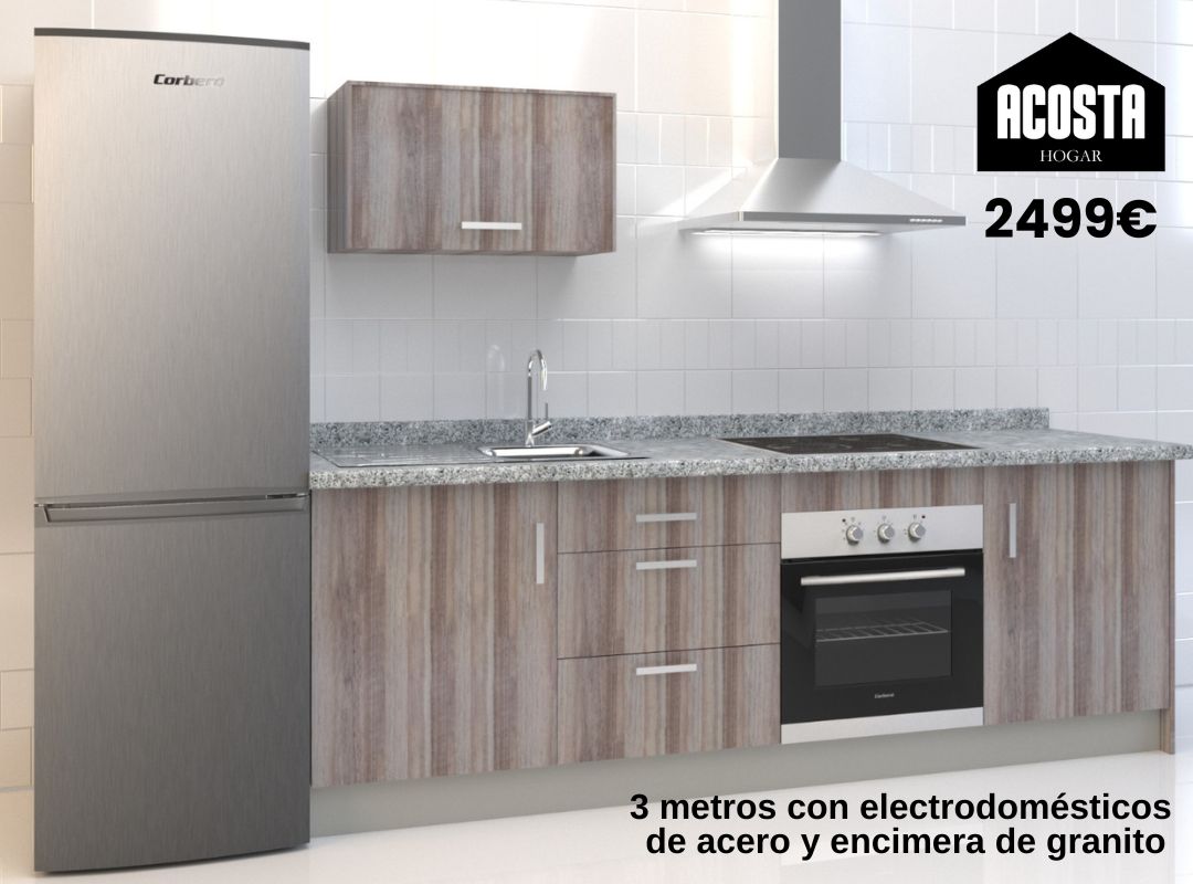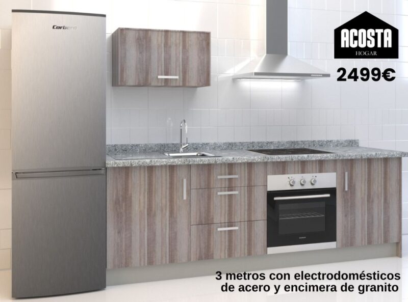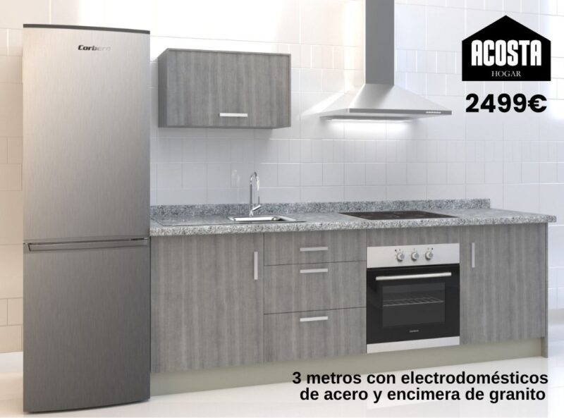 Cocina HASTA 3 metros Formica mate con encimera de granito y electrodomésticos en acero 2499€