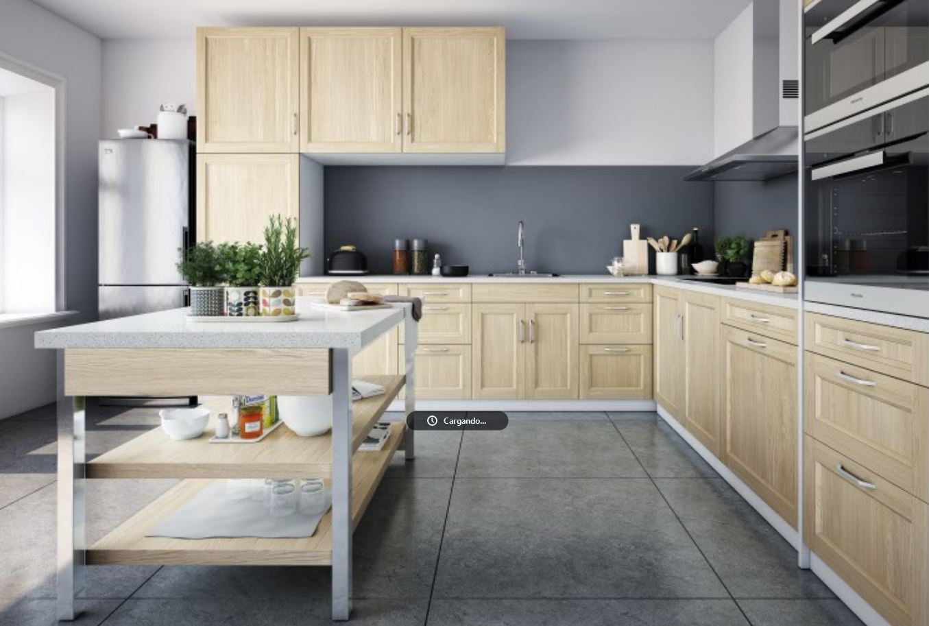 Cocina semimaciza. Roble marco macizo plafón rechapado.