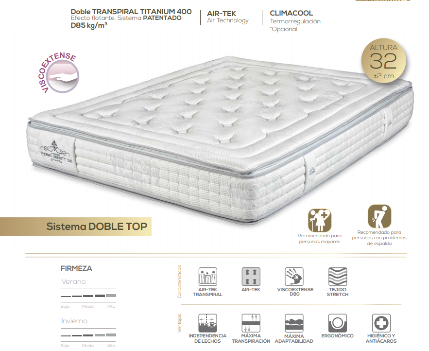- El modelo Thermosensity tiene un sistema exclusivo es fabricado en 1 sola pieza y eso hace que su durabilidad sea superior a la de cualquier colchón.