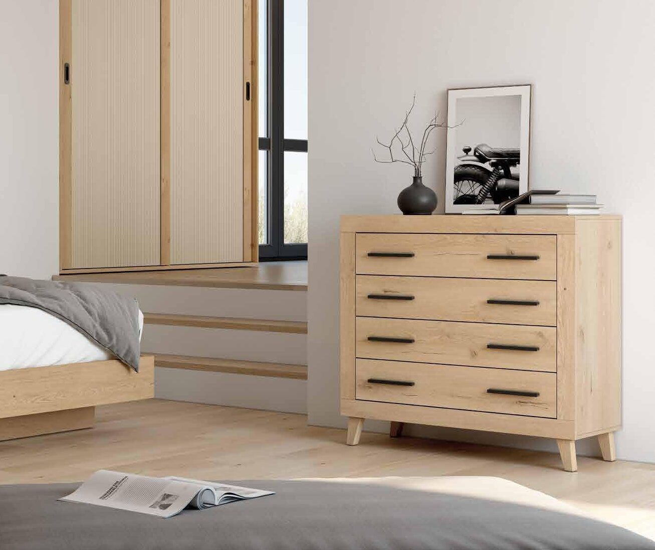 Cómoda para cualquier estancia de la casa, varias medidas para cualquier espacio. Cómoda de líneas sencillas con cuatro cajones y con medidas a elegir de 80cm,100cm o 120cm de ancho.