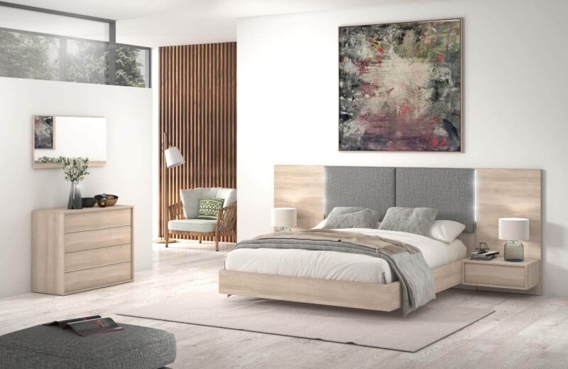 Dormitorio de matrimonio Nórdico-Tapizado Gris