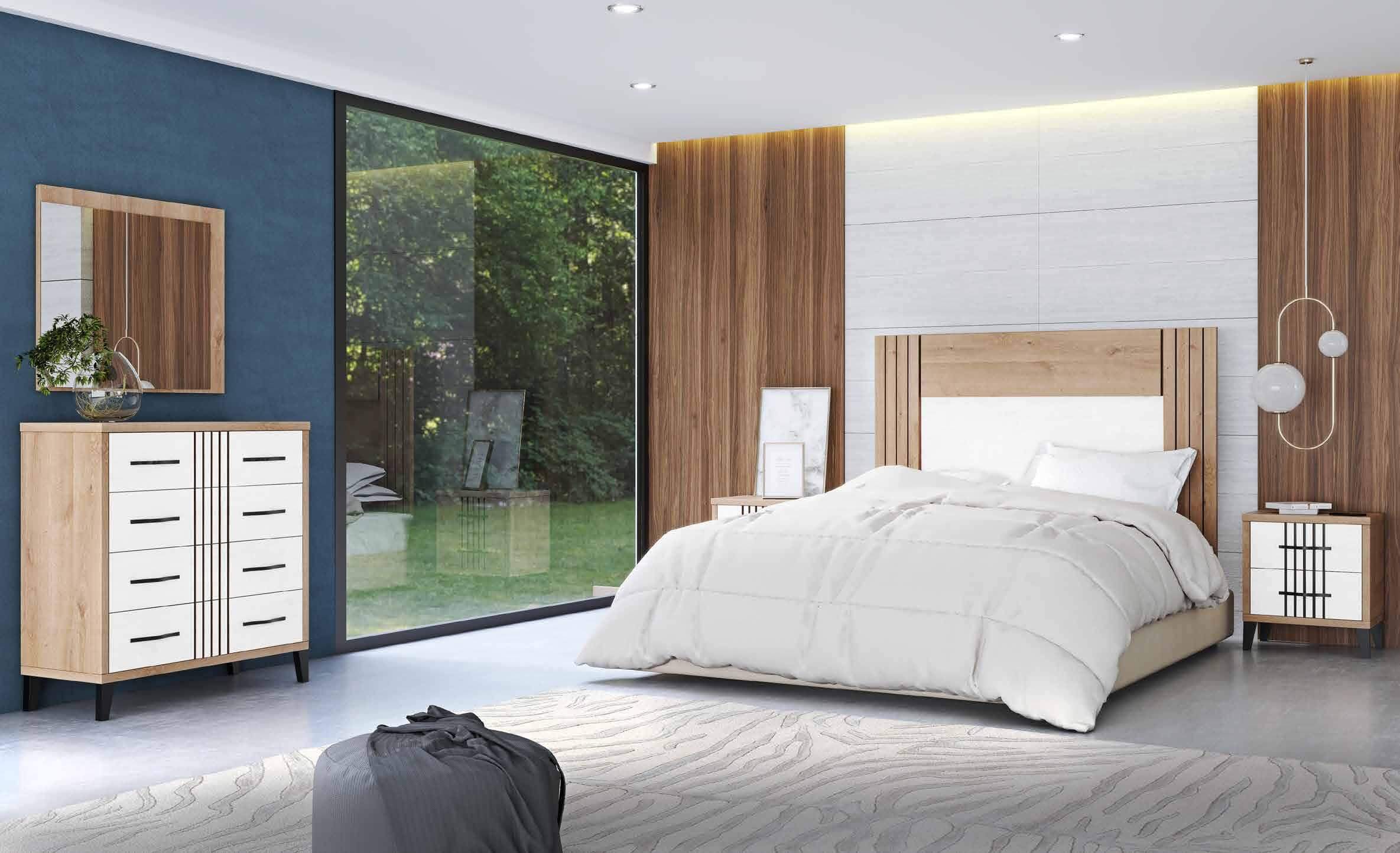 Este dormitorio de matrimonio moderno y actual destaca por sus líneas sencillas y equilibradas, pensadas para crear un ambiente de descanso luminoso, funcional y con estilo propio.