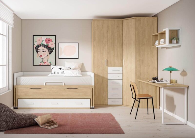 - cama compacta Bicolor 90×190 3 contenedores y cama oculta.