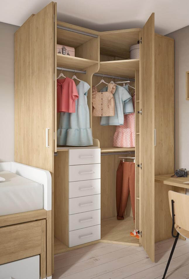 - Armario rincón 1 + 2 puertas con 6 cajones 240x164x90 ozq.