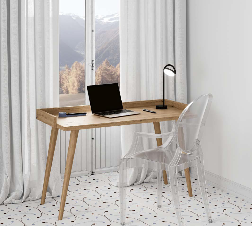 Mesa de oficina estilo industrial bonito y práctico para ocupar un espacio reducido en el estudio.