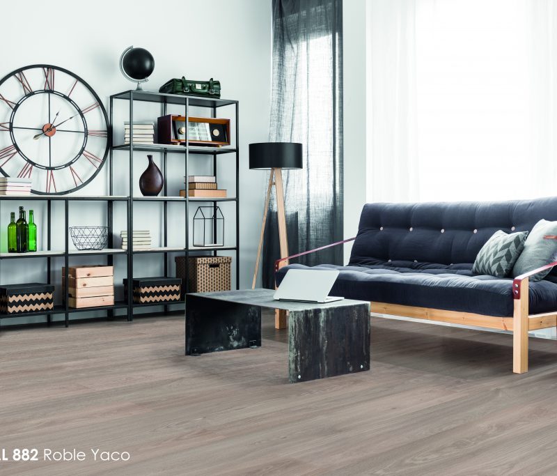 Instalación Sencilla: Gracias a su sistema de clic, la tarima flotante se instala de manera rápida y sin necesidad de adhesivos.