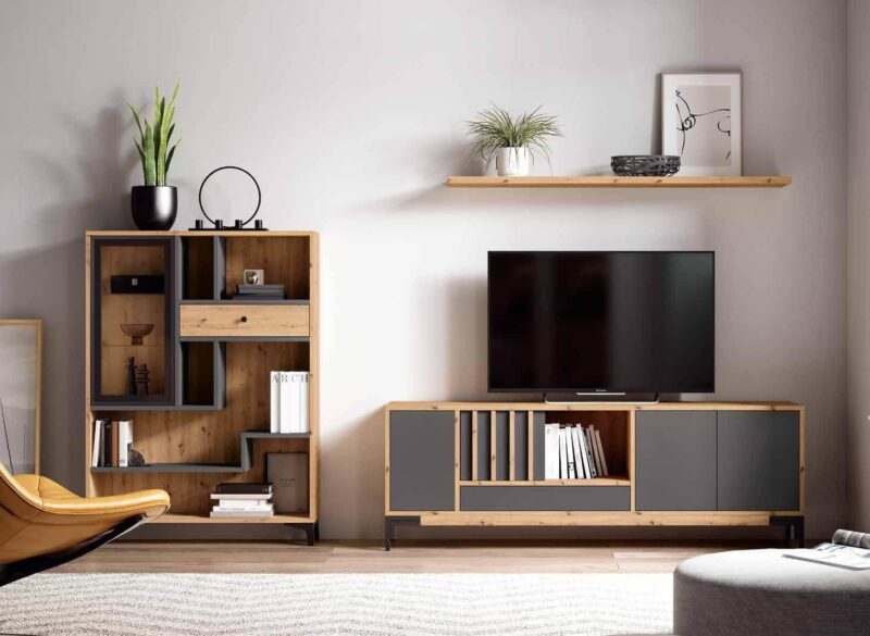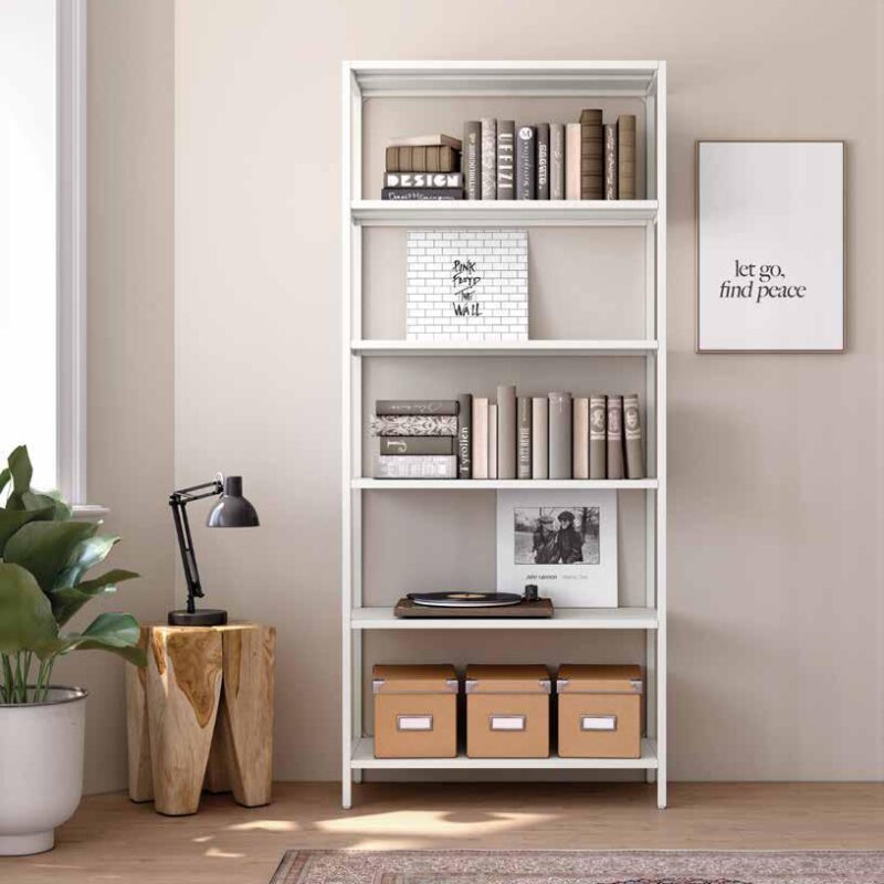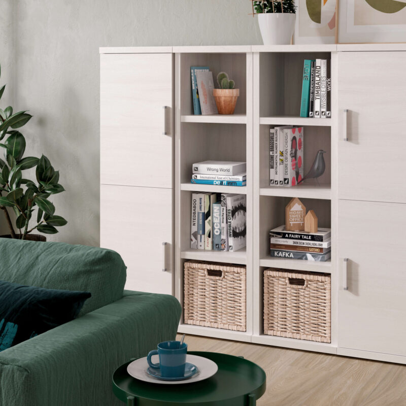 Almacenaje para todo con variedad de tamaños. Esta estantería es perfecta para cualquier rincón de tu casa y te ayudará a solucionar el problema de almacenamiento. También es muy combinable con un bajo de tv.