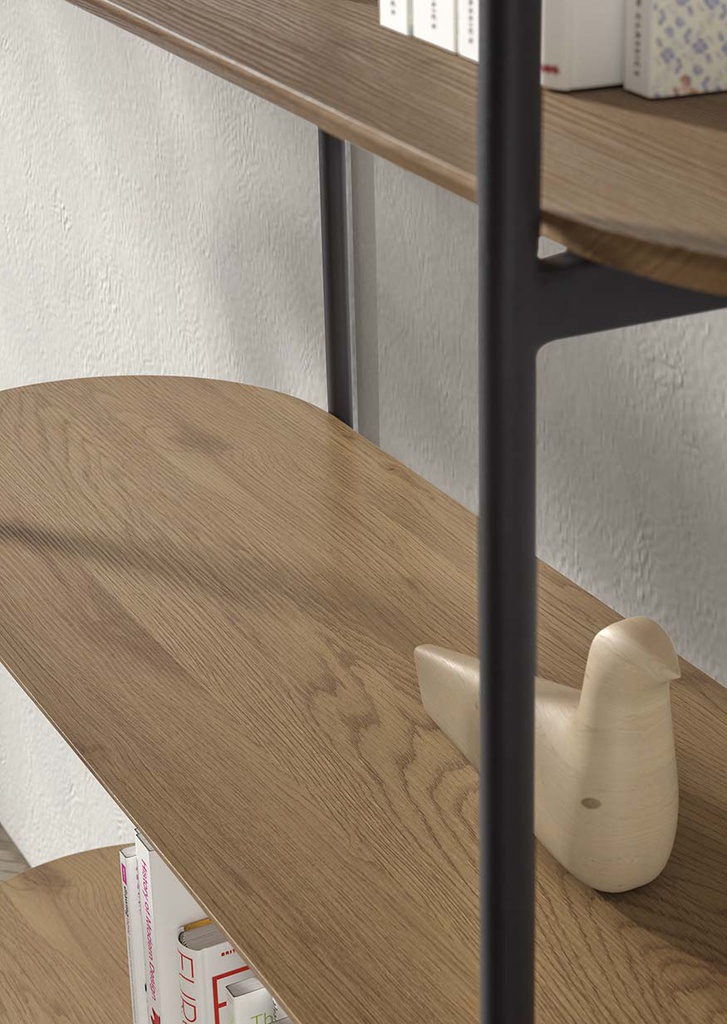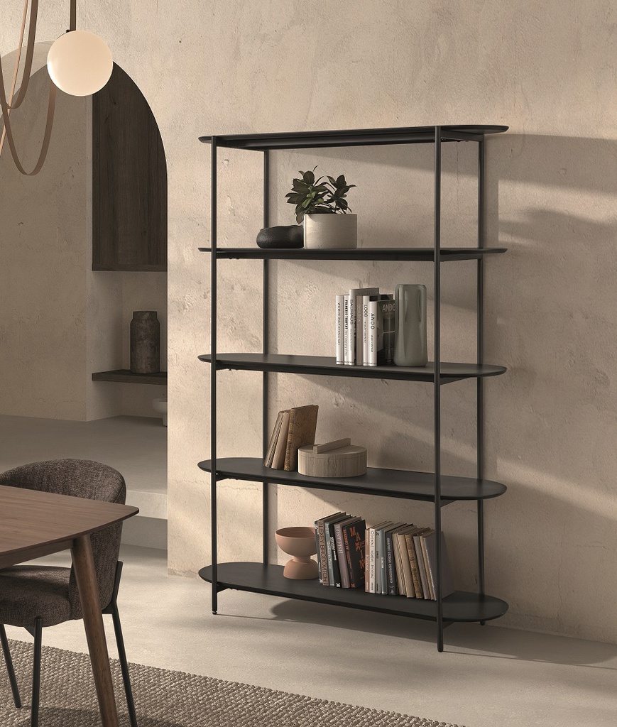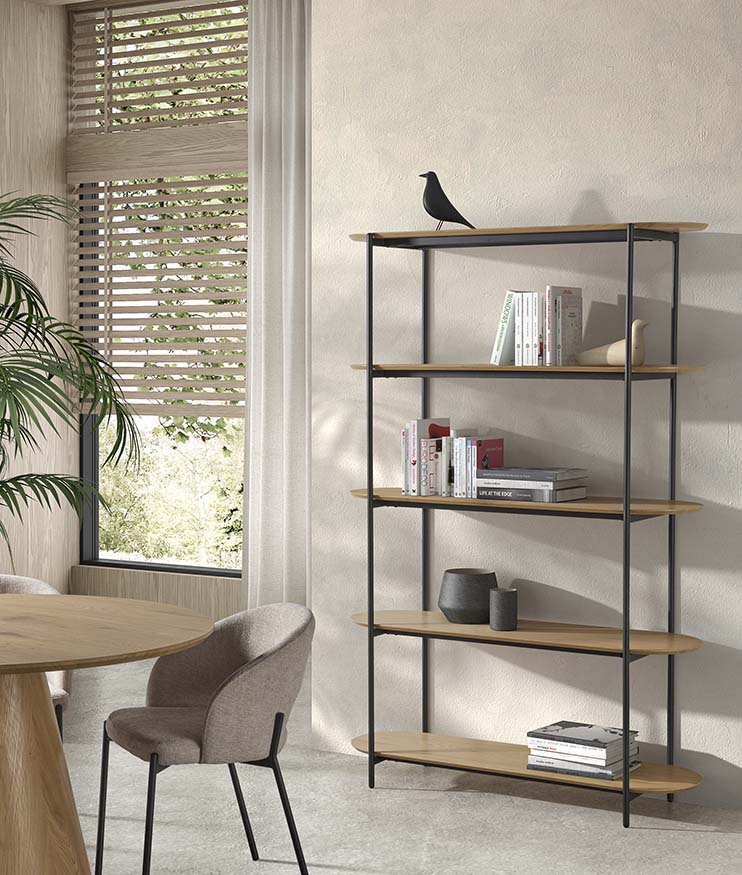 Su diseño abierto y equilibrado aporta ligereza visual, mientras que su combinación de madera y metal da carácter y personalidad a cualquier estancia. Perfecta para quienes buscan una estantería con estilo actual, resistente y funcional.