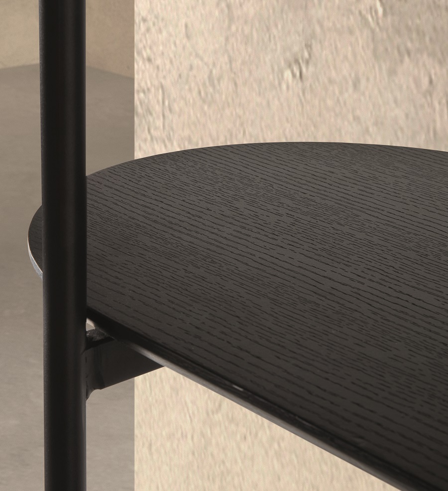 • Baldas en laminado de chapa de roble, resistentes y de aspecto natural.