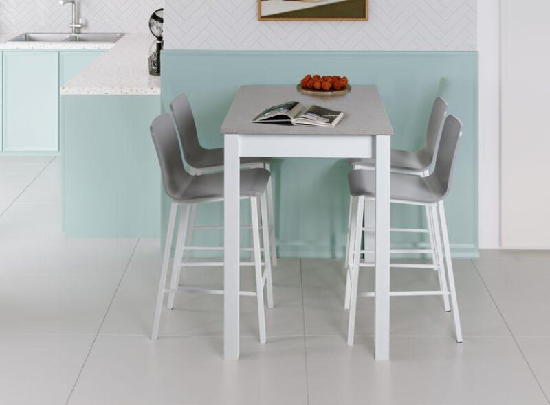 Aporta un toque actual y práctico a tu cocina con esta mesa alta fija, perfecta para espacios modernos y versátiles.