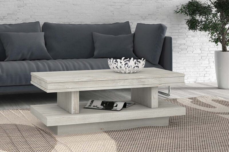 Mesa de centro elevable con un diseño muy original de líneas sencillas a la vez que práctica.