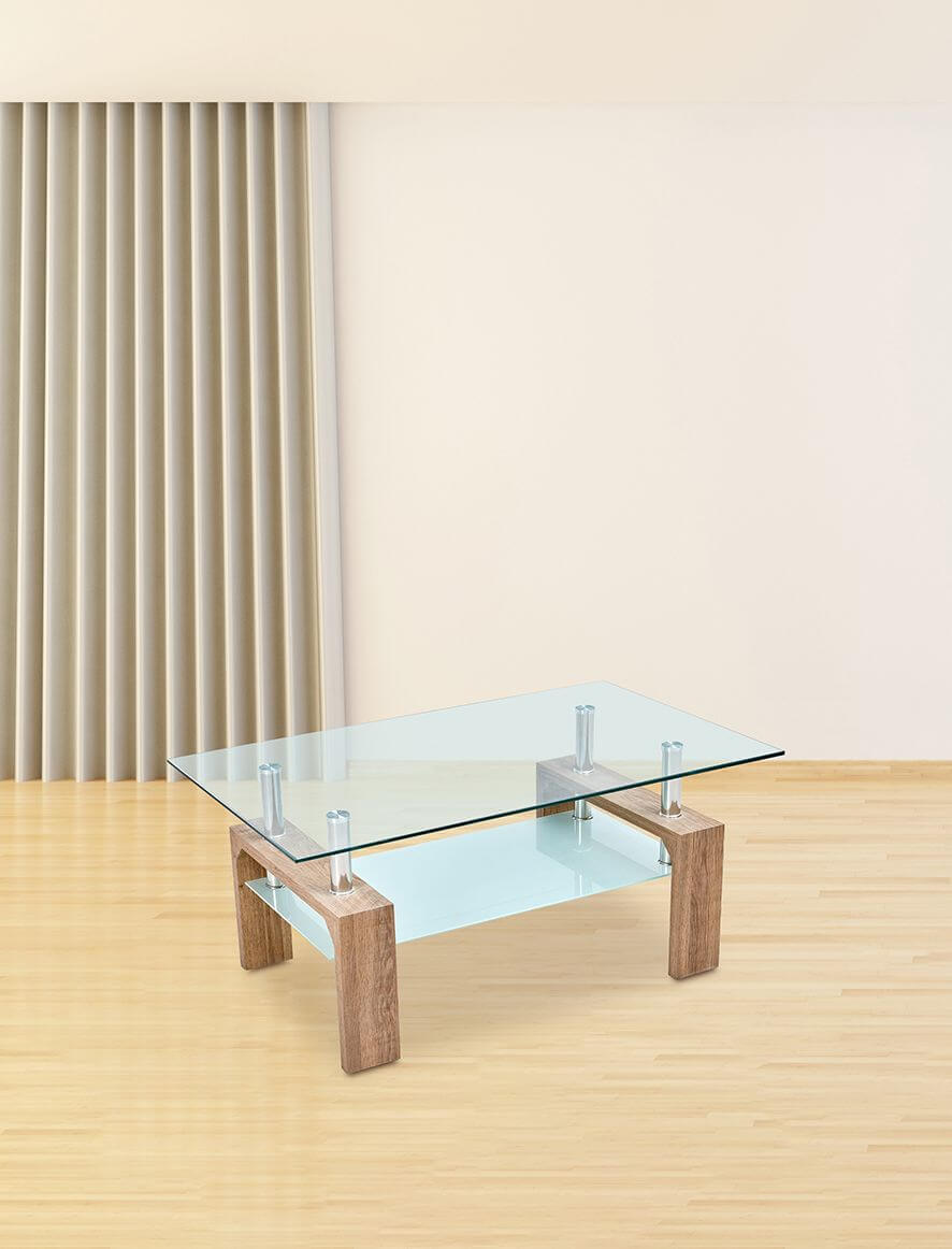 Mesa de centro original con la tapa de cristal templado e incluye revistero también con cristal blanco ahumado, puedes elegir el color de las patas en cambrian o blanco.