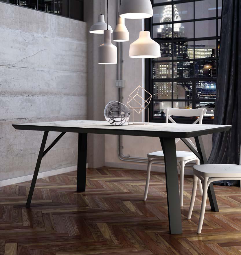 Mesa de comedor fija de estilo glamuroso y patacón. Este modelo es uno de los favoritos de aquellos con un gusto exquisito y elegante.