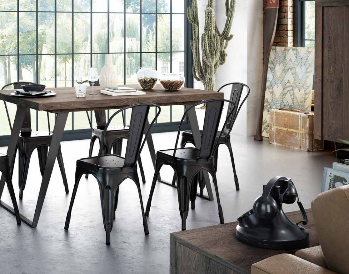 Diseño moderno y resistencia se combinan en esta mesa de comedor con patas metálicas y un elegante acabado en nogal. Perfecta para cualquier ambiente, ofrece un estilo sofisticado y una gran funcionalidad gracias a su sistema extensible.