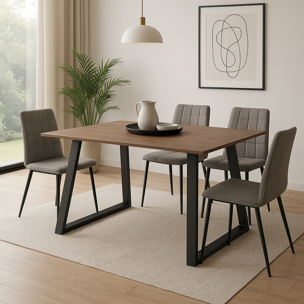 Aporta estilo y funcionalidad a tu comedor con esta mesa moderna, que combina la resistencia del metal con la calidez de la madera Cambrian.