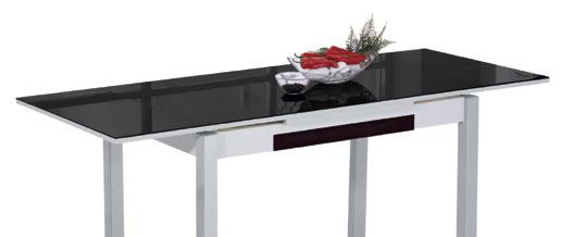Mesa de cocina con tapa y alas de cristal disponible en dos medidas. Práctica a la vez que ocupa poco espacio.