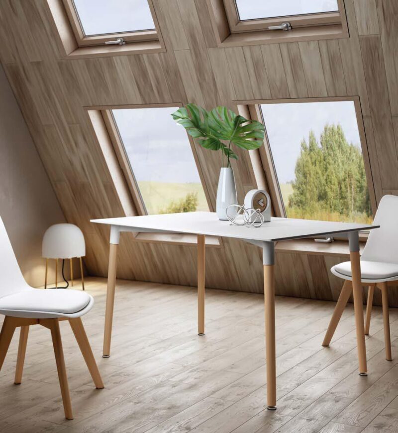 Mesa de comedor fija moderna y bonita. Visita nuestra tienda y encuentra las sillas perfectas para renovar tu comedor. También puedes echar un vistazo a las sillas metálicas que tenemos en la web.