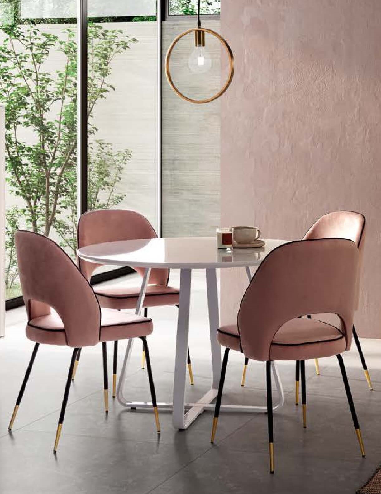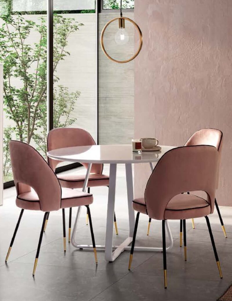 Mesa circular blanco brillo, elegante mesa redonda y diseño moderno.