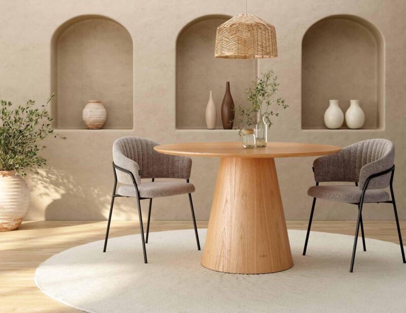 La mesa de comedor redonda extensible de 120 cm es perfecta para quienes buscan un mueble elegante, funcional y de alta calidad. Su formato redondo aporta calidez y armonía a cualquier comedor, mientras que su sistema extensible te ofrece espacio extra en segundos para disfrutar de reuniones inolvidables.