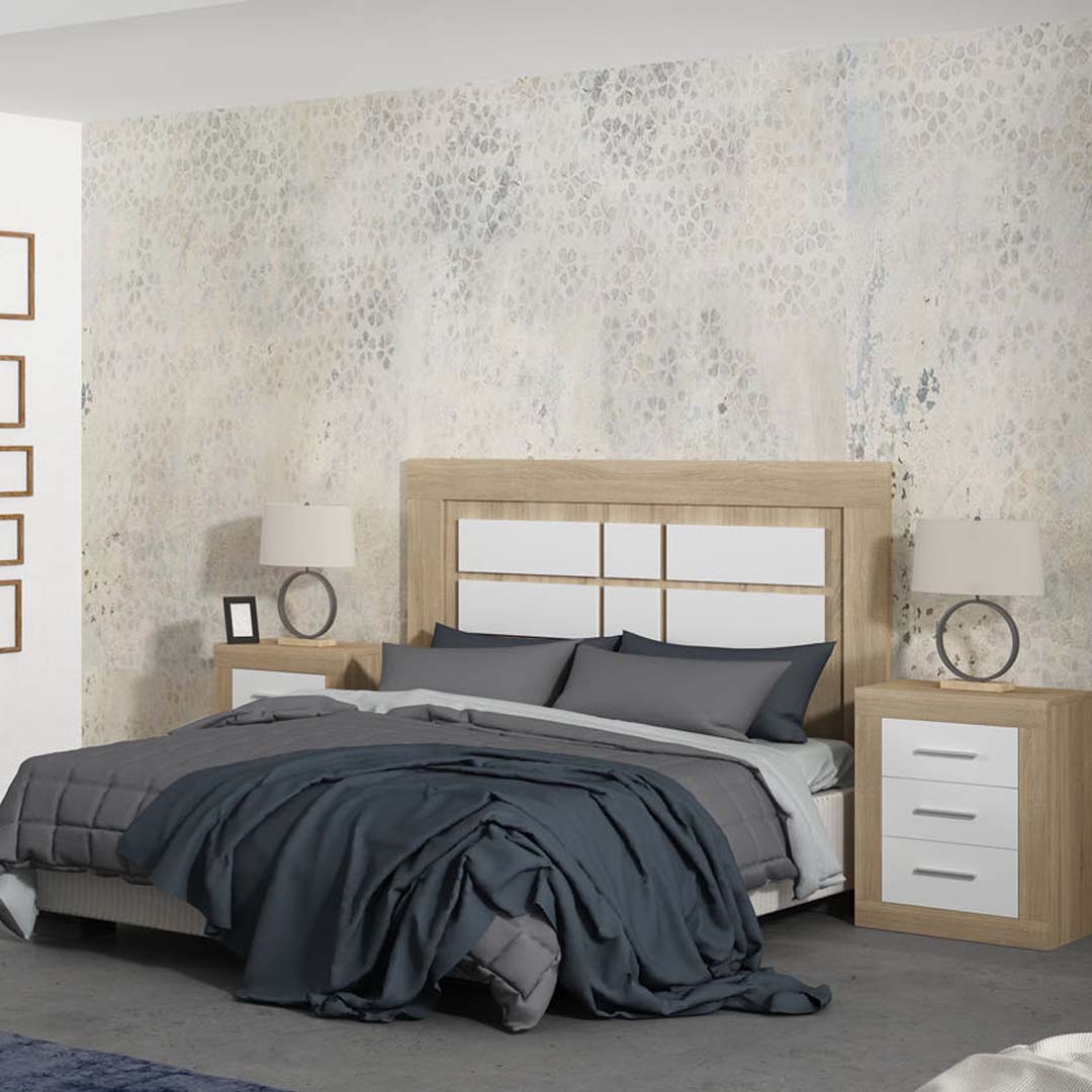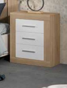 Mesita de noche estilo moderno líneas sencillas con tres cajones y con medida de 57cm de ancho.