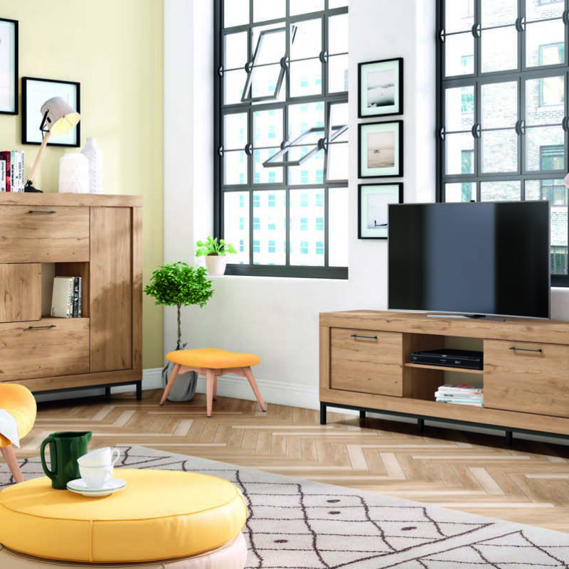 El módulo de TV se convierte en el protagonista de tu espacio gracias a la pata Marco, aportando un toque elegante y moderno. Además, puedes personalizar su estilo eligiendo entre diferentes variantes con la pata Recta o la pata Home, adaptándose a tus necesidades y preferencias.