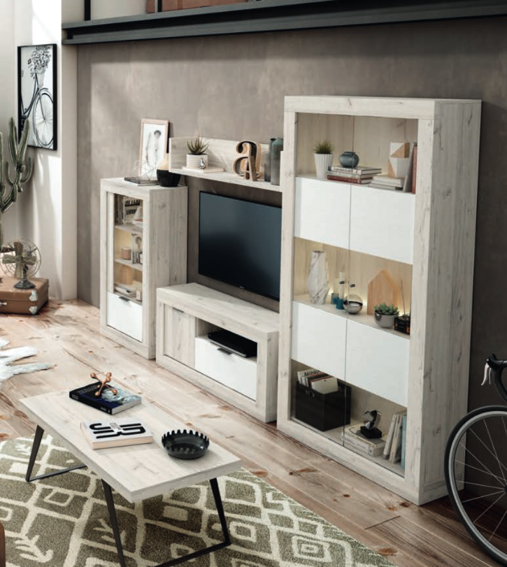 Disponible en una sofisticada gama de colores combinables – Óxido, Piedra, Blanco, Maya, Nogal, Ártico y Ceniza – para que crees una composición única a tu medida. Además, su exclusivo sistema de iluminación integrada transforma el ambiente, generando una atmósfera cálida y envolvente que hará de tu salón un espacio aún más acogedor.