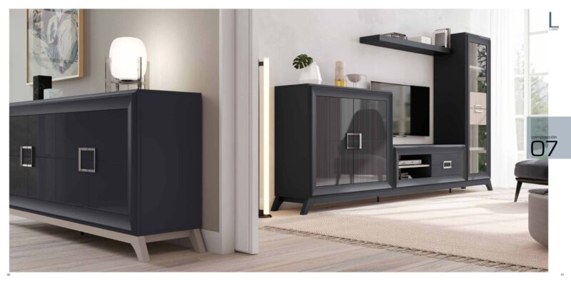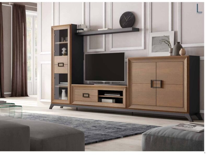 Mueble Salón lacado y chapa roble