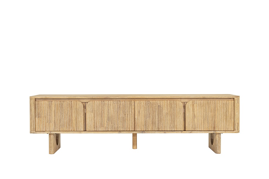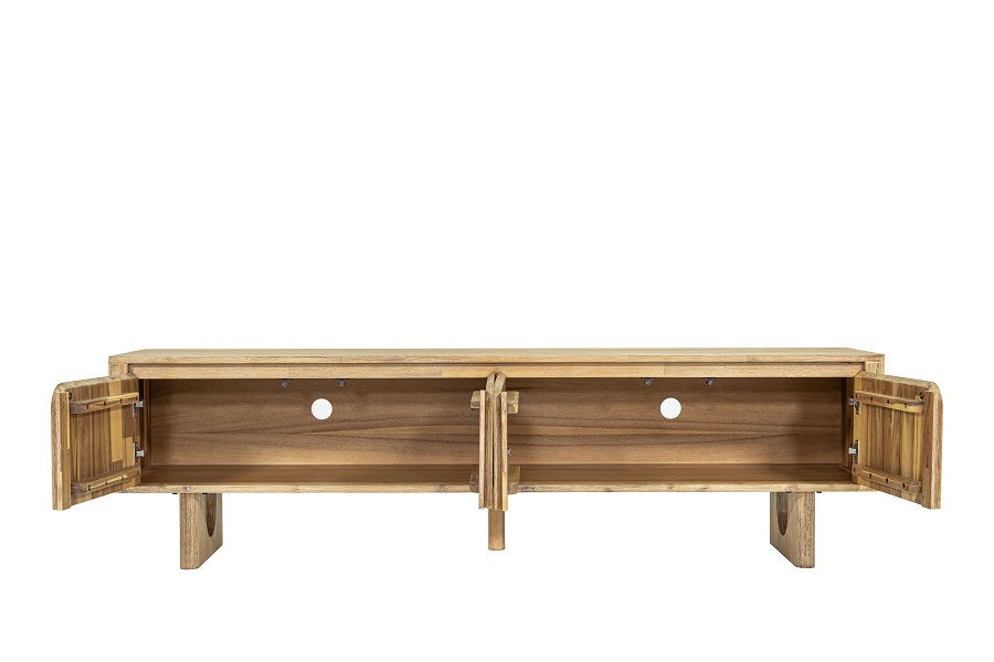 El mueble de TV-502 destaca por su diseño natural y atemporal, fabricado íntegramente en madera maciza de acacia. Con líneas sobrias y un acabado cálido, es la opción perfecta para quienes buscan un mueble robusto, funcional y con personalidad. Su tamaño amplio permite organizar tu televisor y todos tus dispositivos de forma práctica, aportando además un toque elegante a tu salón.