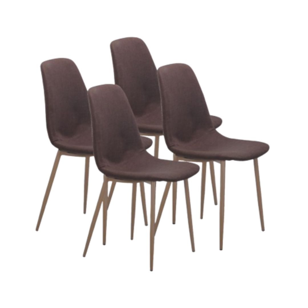 El modelo Cody nos encanta, además de ser muy ergonómica. Unas sillas tapizadas en color marrón con las patas metálicas pintadas con color madera lo que hacen que destaquen por su elegancia.