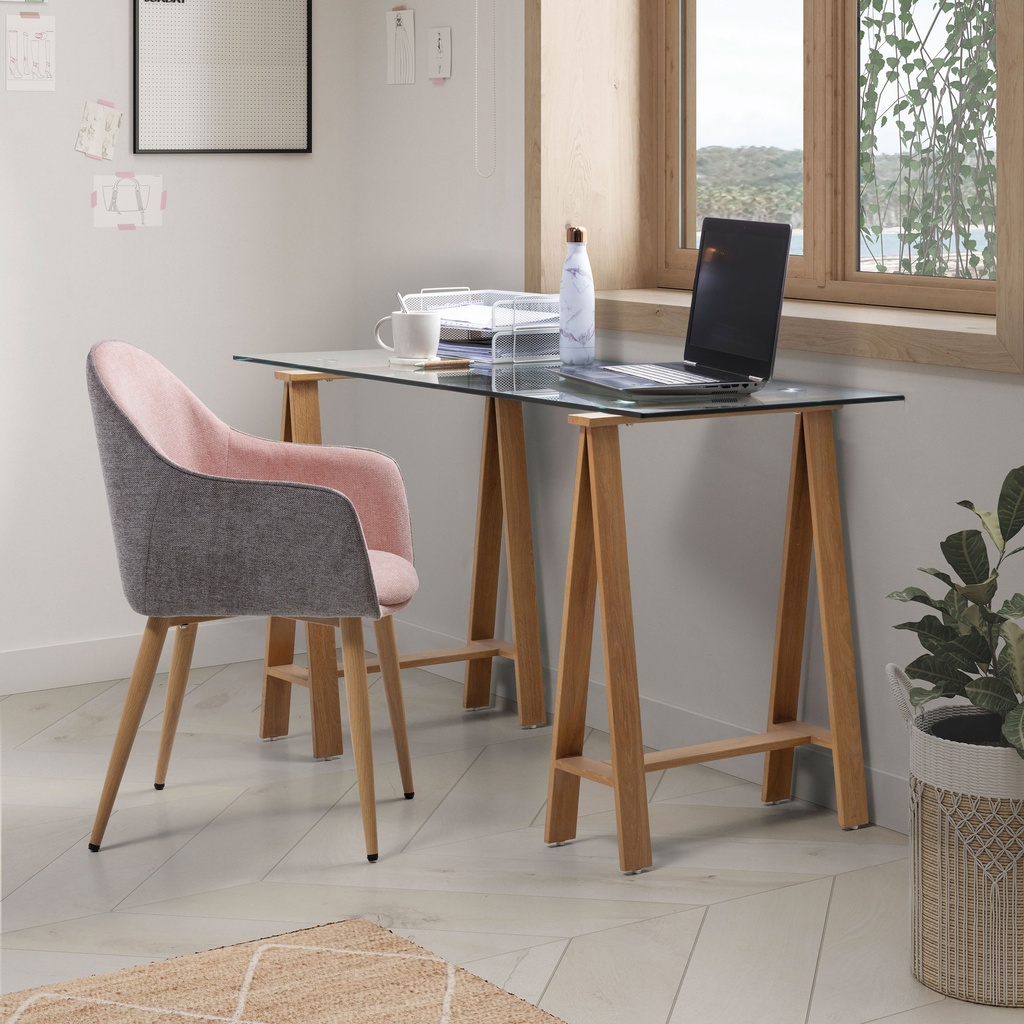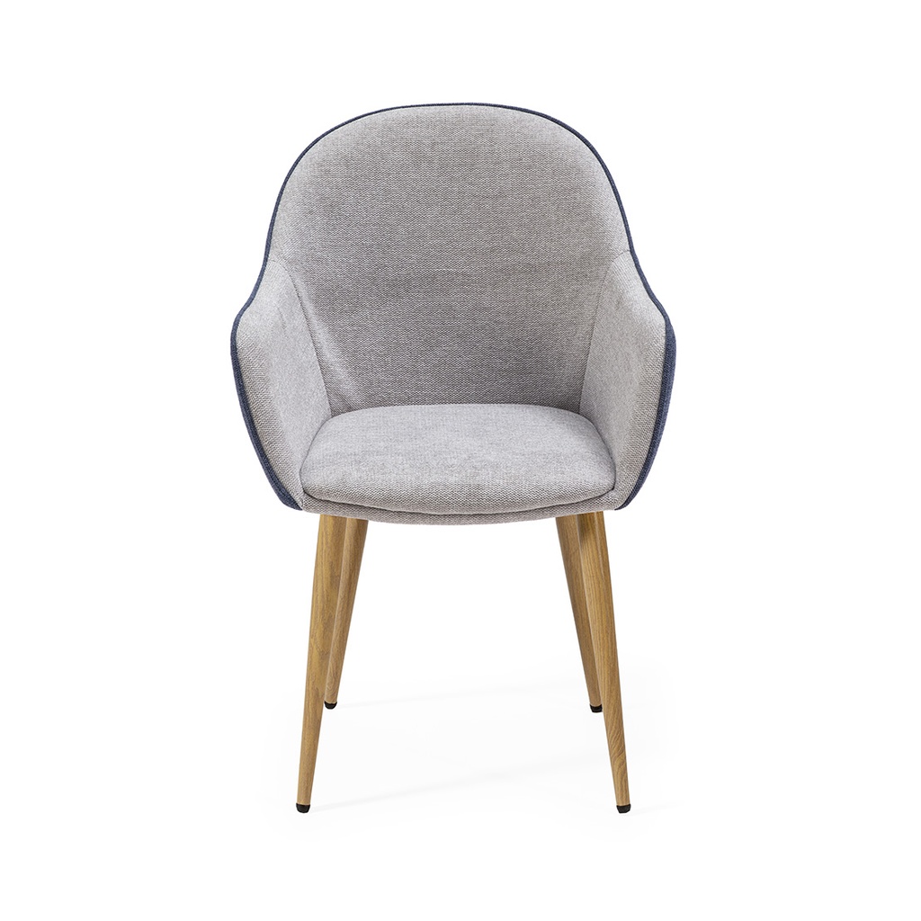 Este pack de 2 sillas tapizadas combina un diseño moderno con la máxima comodidad. Con sus patas metálicas en acabado color roble y un tapizado en tela combinada bicolor, aportan frescura y estilo a cualquier comedor o salón. Su estructura resistente y su asiento mullido las hacen ideales tanto para el uso diario como para disfrutar de largas sobremesas con total confort.