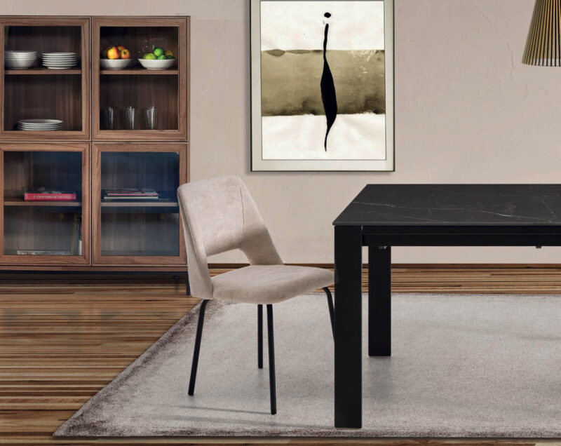 Eleva el estilo y la comodidad de tu hogar con la Silla Greta, una pieza de diseño tapizado con patas metálicas, que combina resistencia y elegancia. Perfecta para cualquier espacio moderno.