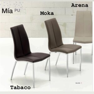 ¡Promoción especial sólo hasta fin de existencias! Ahora el modelo de silla Mía a mitad de precio y disponible en gris. ¡No dejes pasar esta oportunidad!. De piel sintética con las patas metálicas muy fácil de limpiar. El respaldo es curvo lo que garantiza la comodidad de la misma.