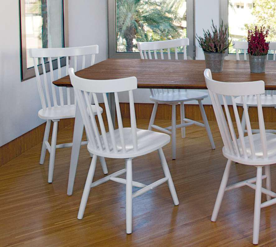 Silla modelo Wood lacada en blanco o en madera de caucho.