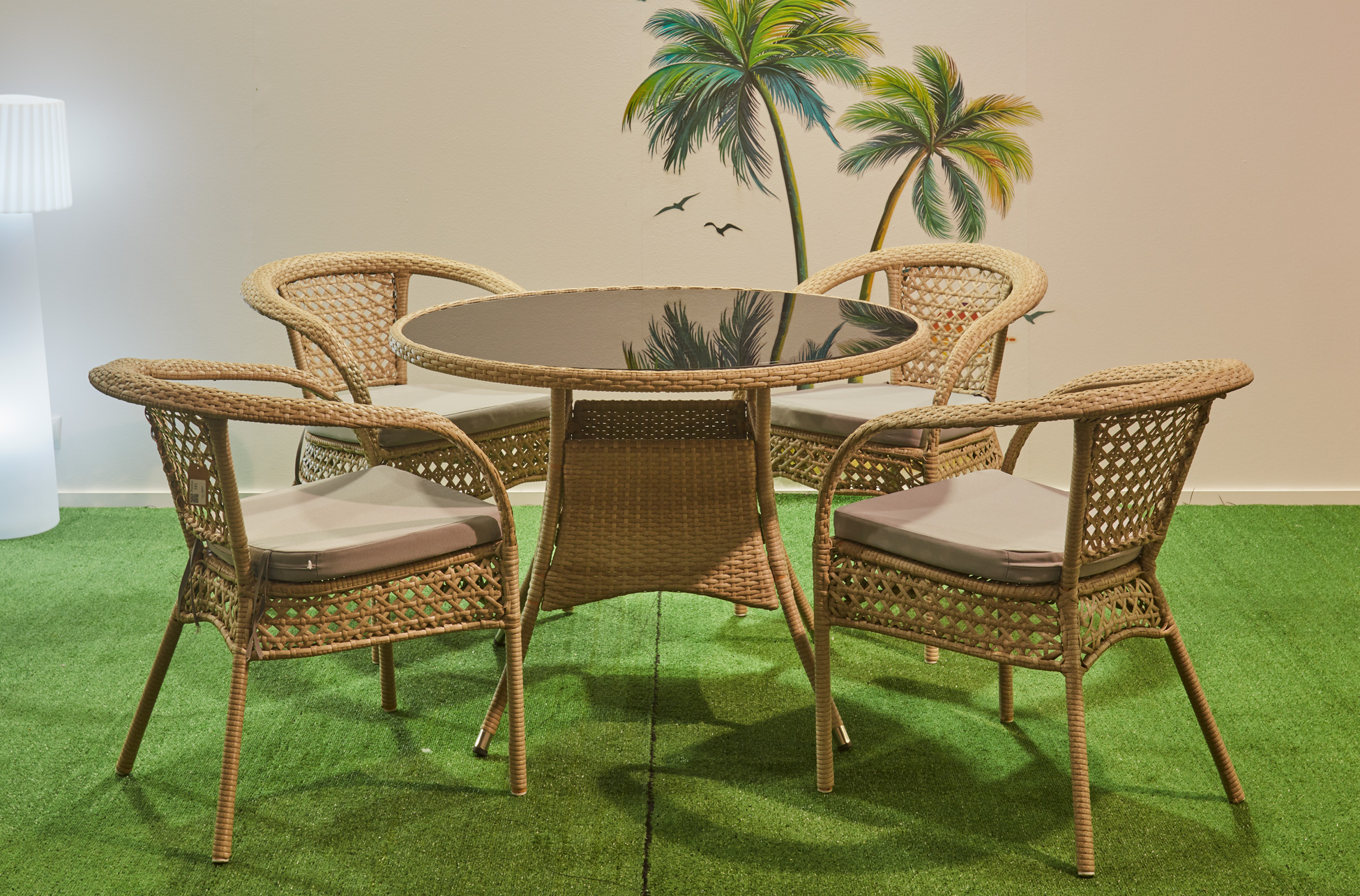 - Materiales: Rattán PE marrón natural, estructura metálica, cojín impermeable.