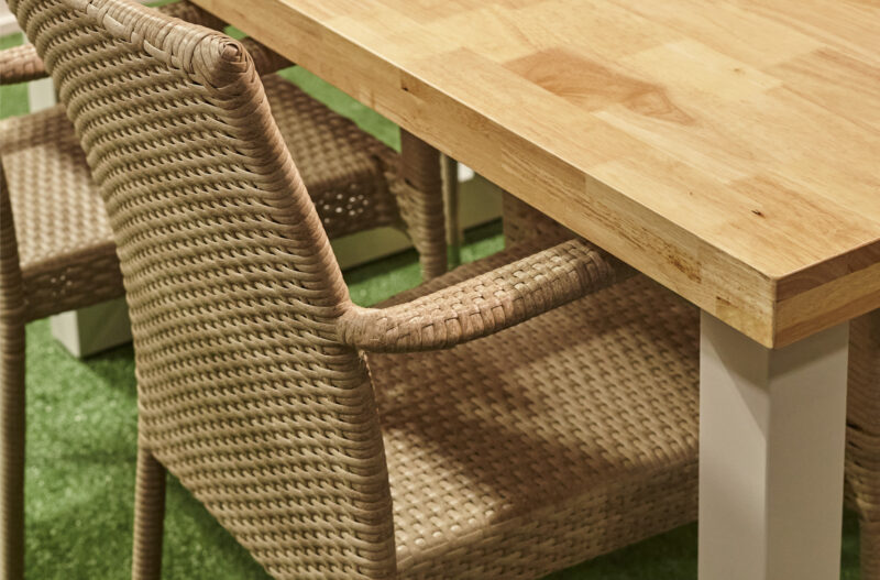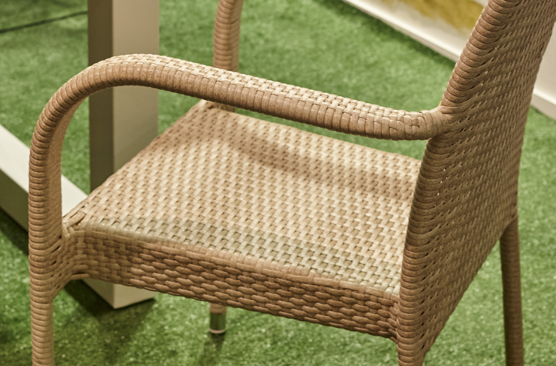 - Materiales: Rattán PE marrón natural y estructura metálica.