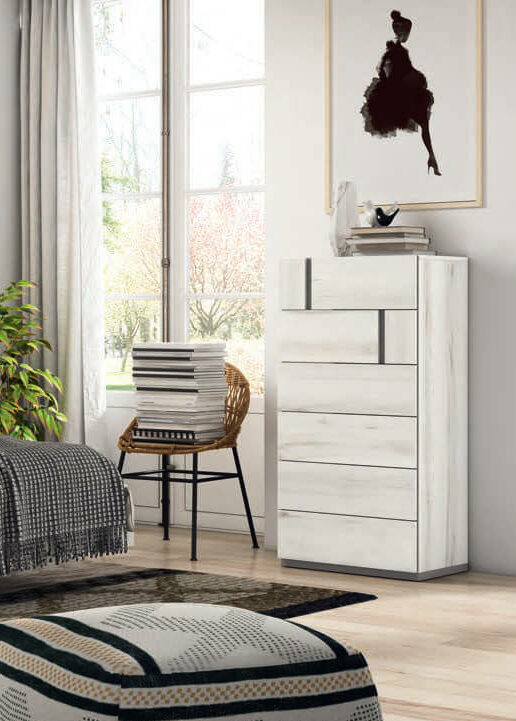 Sinfonier modelo PAR 6 cajones para un dormitorio perfecto. Elegante y de forma sinuosa, perfecto para espacios pequeños e ideal para un dormitorio por su diseño único.
