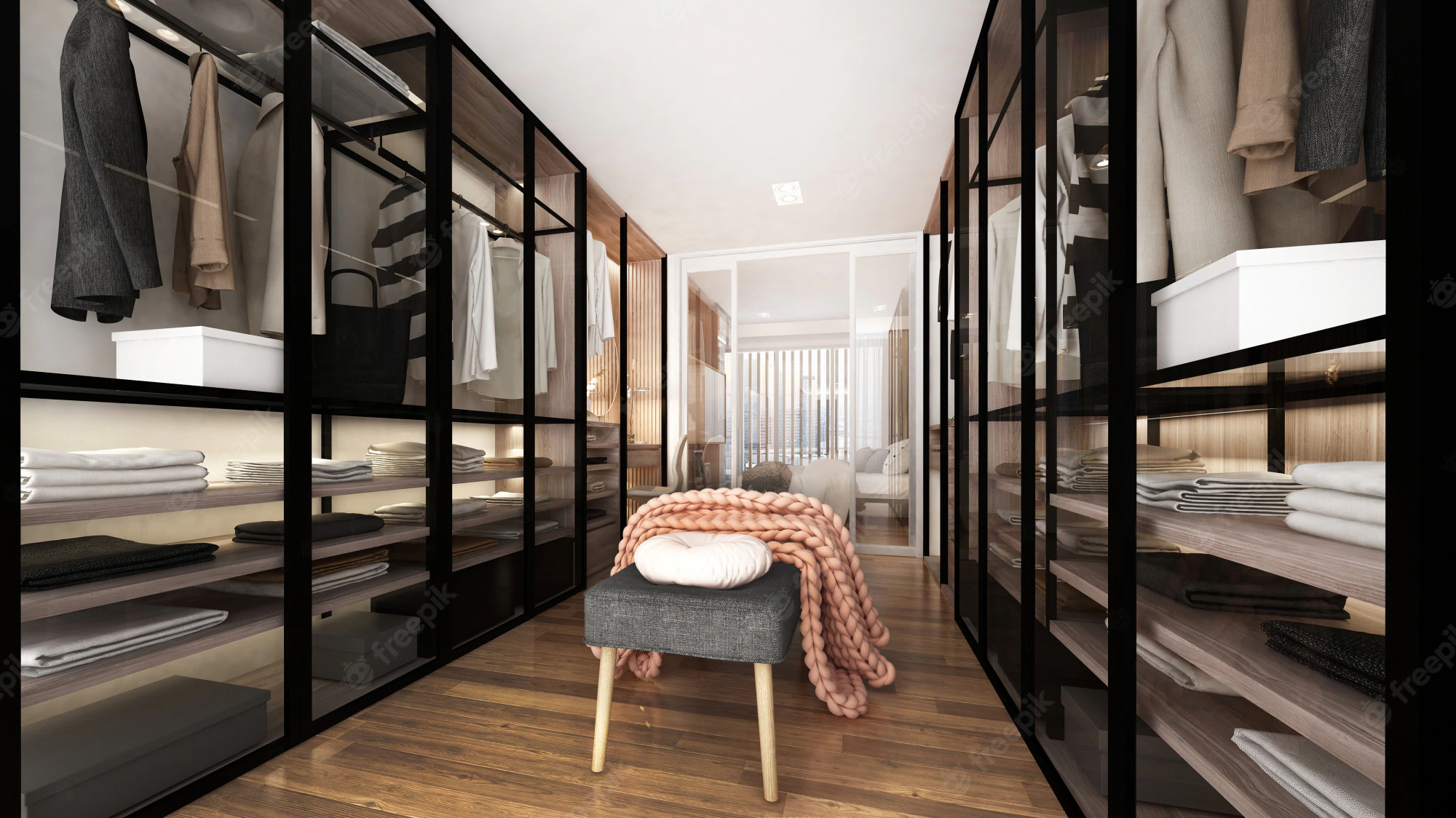 La mejor distribución para aprovechar el espacio, un armario perfectamente distribuido con baldas fijas o móviles, barras, cajones para calzado, cajones luces, espejo y todo lo que tú quieras y busques. Y por supuesto, con un espacio diferenciado para cada miembro de la familia que vaya a usar ese vestidor.