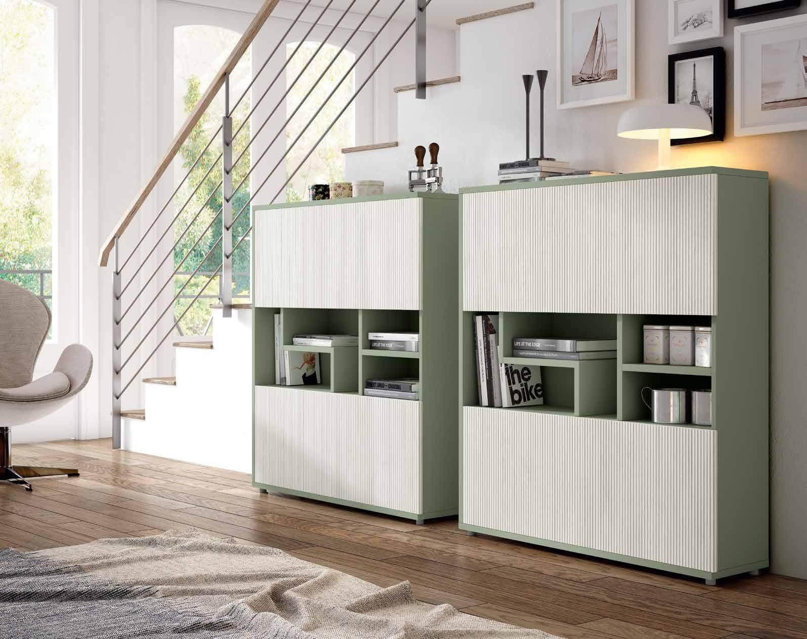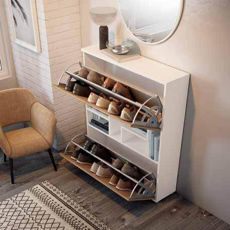 - Herrajes; bisagras regulables, guías ocultas de cierre y sistemas de pistón elevable abatible.